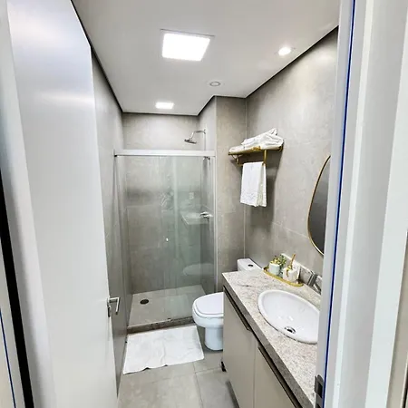 El apartamento Beach Class Summer - Porto De Galinhas cuenta con un cuarto de estar, un balcón y una cocina, y comodidades como climatizador. Este apartamento dispone de un inodoro separado y ducha para garantizar tu comodidad.